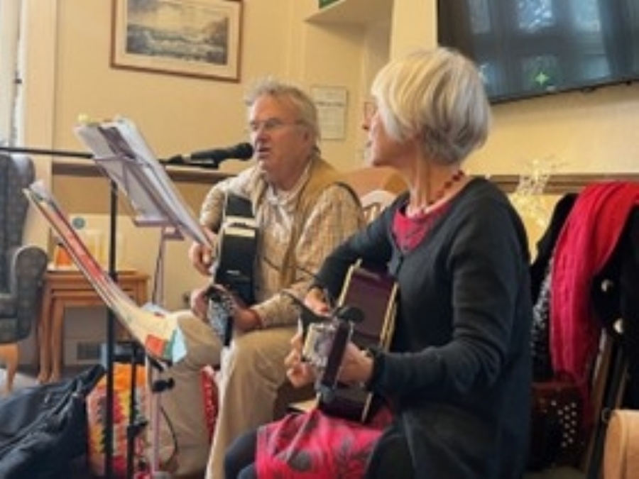 Music as usual played a very important part, we had Ewan playing some classical tunes, with quite a few Christmas tunes too. Andy came in with a few helpers, playing the guitar, with Micky singing, playing the guitar and accordion. Chris joined us on another occasion and played the organ with some great sing-along tunes. On another afternoon Steve sang more traditional Christmas tunes from an age gone by, so there was something for everyone. We had a lovely Carol Service one afternoon taken by our staff vicar Jan, with several relatives attending followed by tea and mince pies, it was a lovely atmosphere.