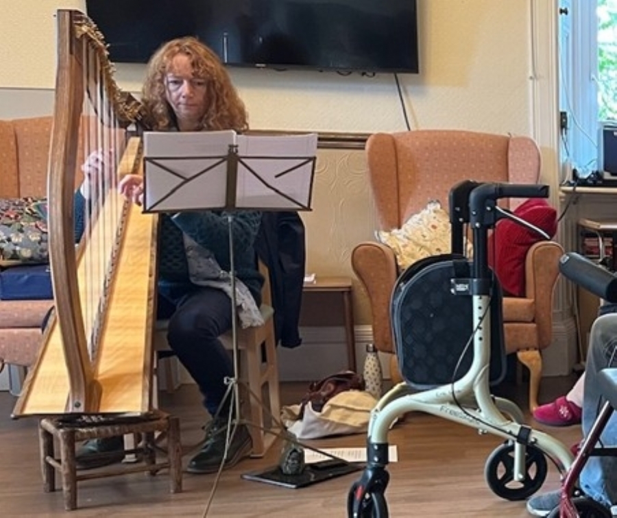 Hazel, our wonderful harpist played some lovely Celtic tunes, one of our residents even had a go and strung together a tune. We had a new musician who sang and played the guitar to a variety of tunes from the 50s, 60s and 70s, he was very upbeat, and went down well with staff and residents, so we look forward to his next performance.